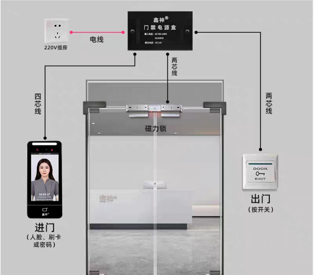 钉钉/DingTalk MD-D3 门禁系统 电动平开无框玻璃门门禁系统(1套)