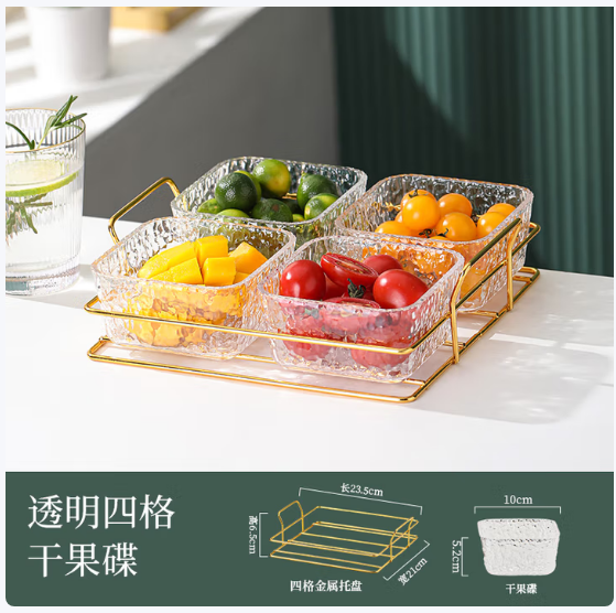 威卡/WIKA 300ml 日用玻璃制品 透明4宫格分格果盘碗水果盘点心小吃干果坚果 套 套