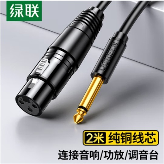 绿联/UGREEN 20719 数据线 6.5mm转卡农公对母话筒音频线 6.35卡侬口三芯XLR单声道 麦克风调音台音响箱功放连接线 2米