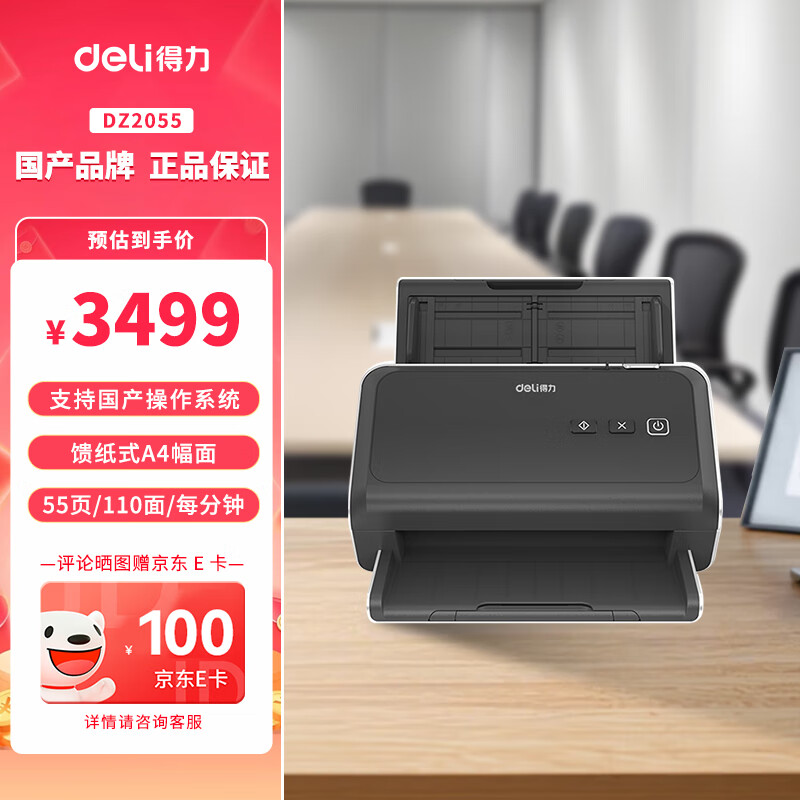 得力/deli DZ2055 扫描仪 自动馈纸彩色双面A4幅面55ppm/110ipm