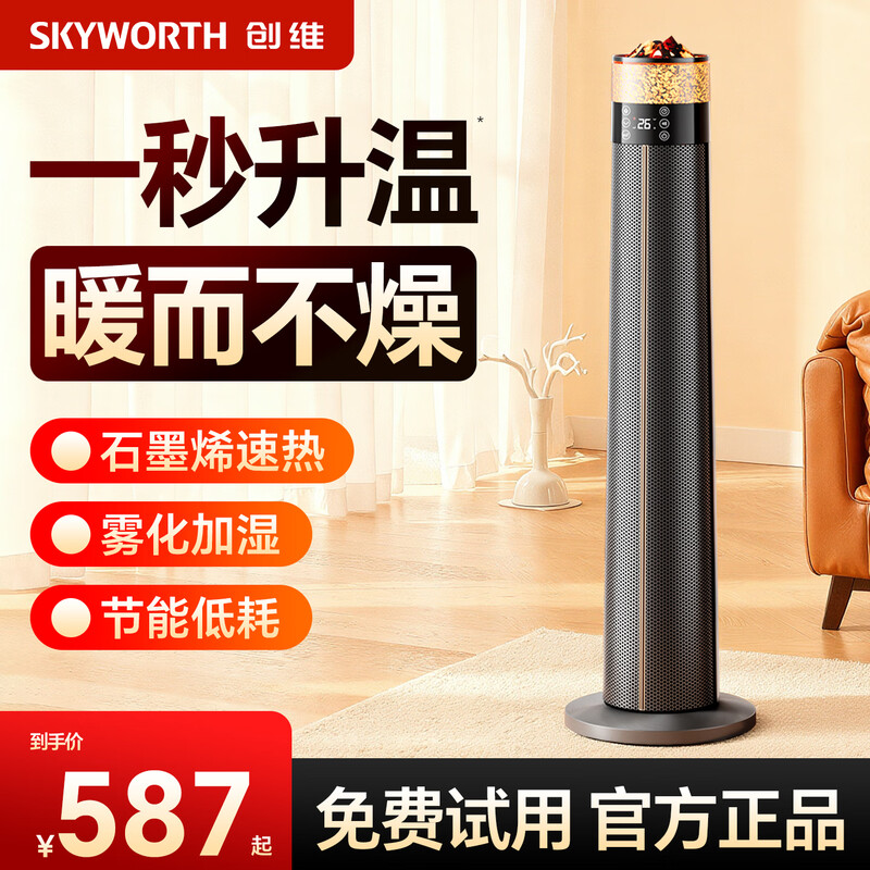 创维/Skyworth A853 取暖器 创维石墨烯取暖器智能语音暖风机家用落地电暖气电暖器取暖器节能省电整屋速热 七彩加湿氛围灯-快速升温-加湿