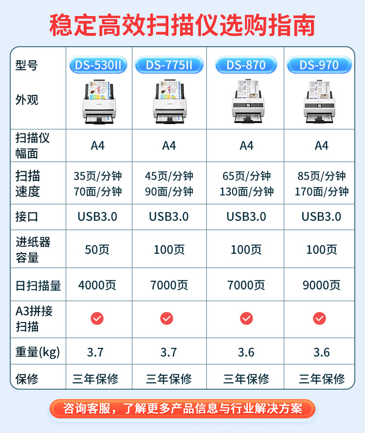 爱普生/EPSON DS-770II 扫描仪 A4馈纸式高速彩色文档扫描仪 支持国产操作系统/软件 扫描生成OFD格式