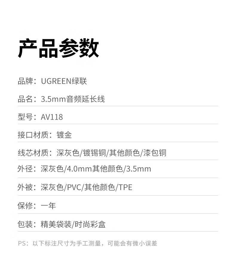 绿联/UGREEN 40675 数据线 绿联 网络连接设备 3.5mm公对母音频延长线连接线带麦克风 立体声车载AUX音响加长线2米 AV118 40675