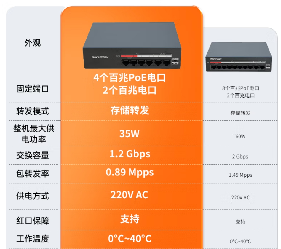 • 海康威视/HIKVISION DS-XS10G-P 以太网交换机 网线供网供电 安防监控国标网络网线分线器