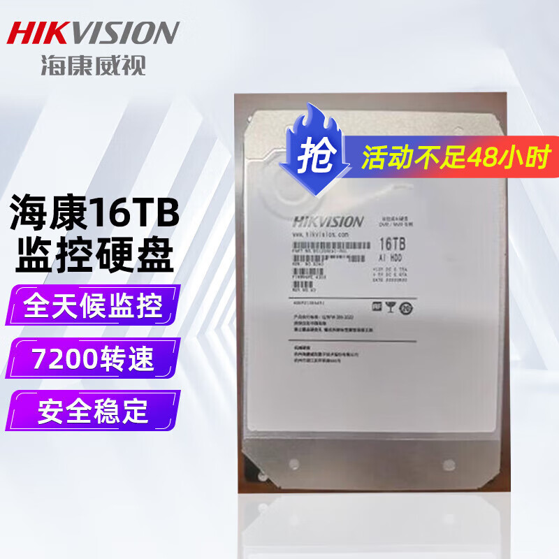 • 海康威视/HIKVISION DS160HKAI-VH1 移动硬盘 台式机SATA串口主机3.5英寸电脑硬盘录像机高速传输全新原装 海康威视【16TB】DS160HKAI-VH1 7*24小时全天监控 技术远程指导