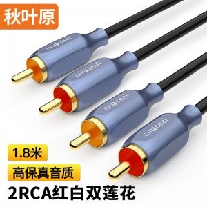 秋叶原/CHOSEAL QS3514T1D8 数据线双莲花头音频线2RCA公对公 二对二红白AV音频信号线 电脑电视接音响功放线 1.8米