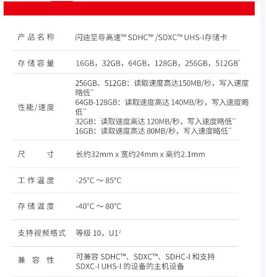 闪迪/SanDisk 512G U盘/存储卡 高速存储卡 读速150MB/s全高清视频