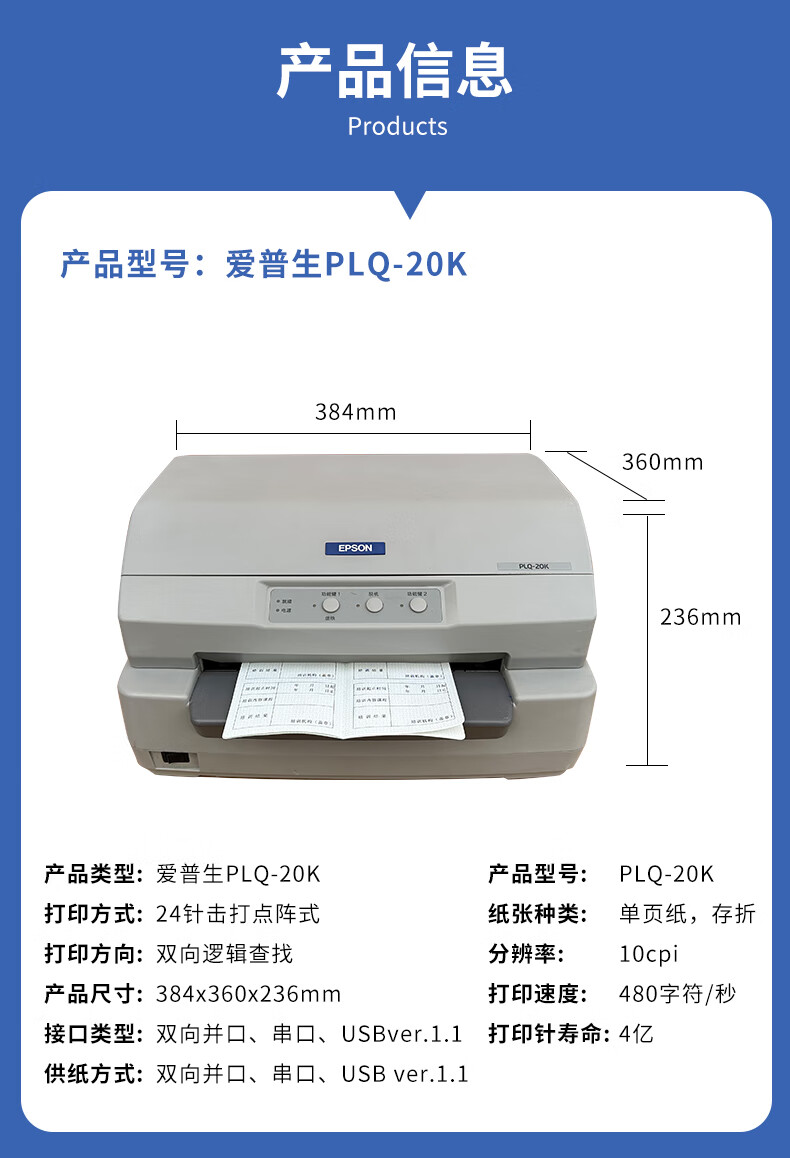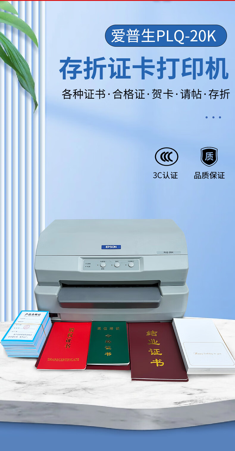 爱普生/EPSON PLQ-20K 其他打印机 贺卡合格证存折毕业证件打印机