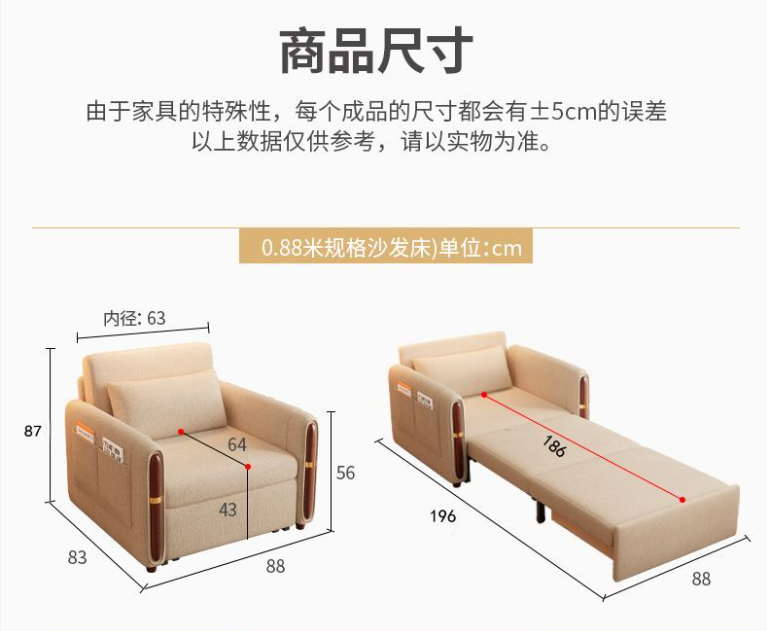 派格 PG01 单人沙发 一体两用多功能客厅阳台可躺可拆洗抽拉式单人沙发床