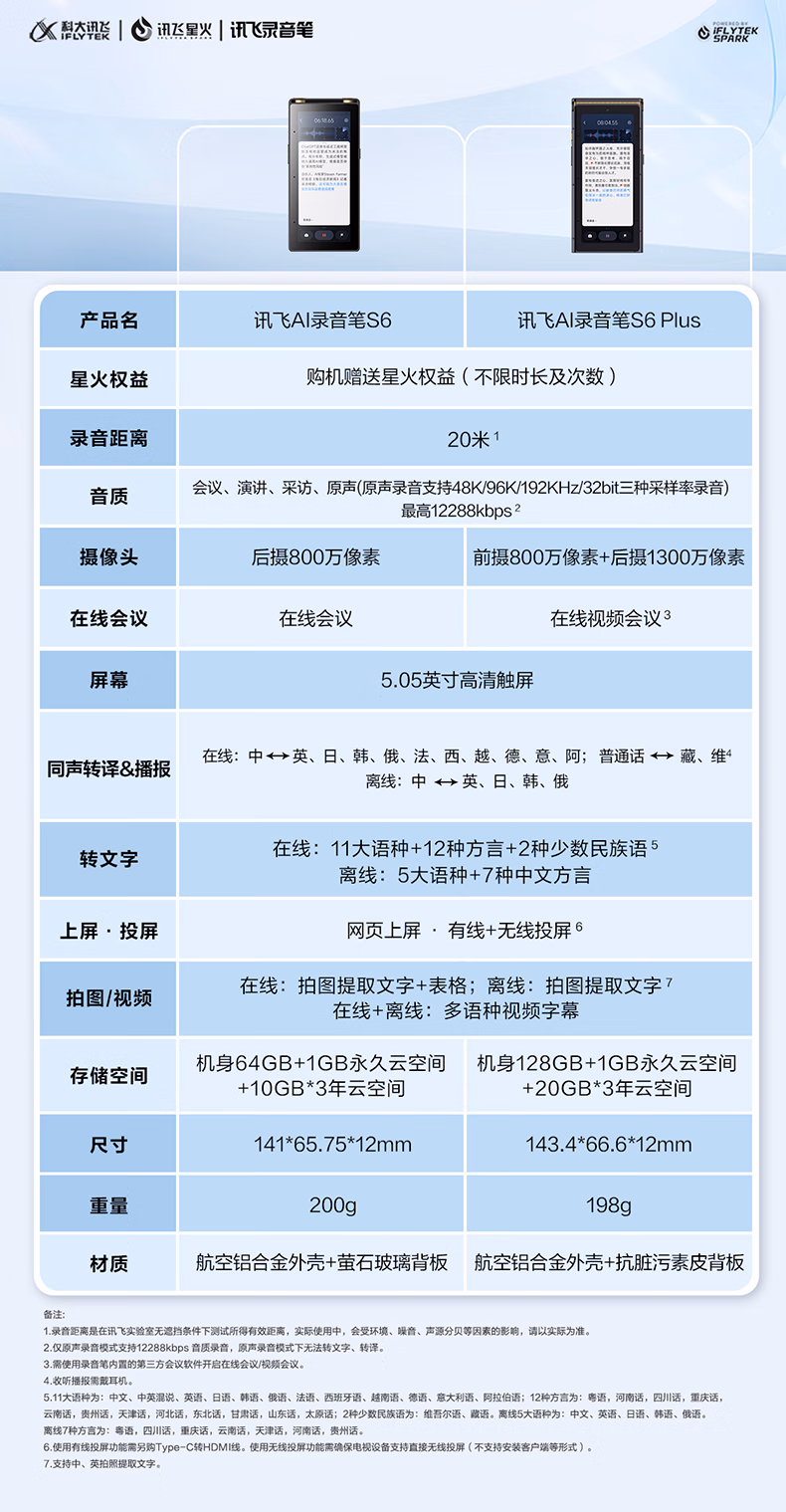 科大讯飞/iFLYTEK S6 Plus 录音笔 智能全向收音会议转写文字实时翻译支持离线转写32G内存终身免费转写考研考证必备 【新品进阶】