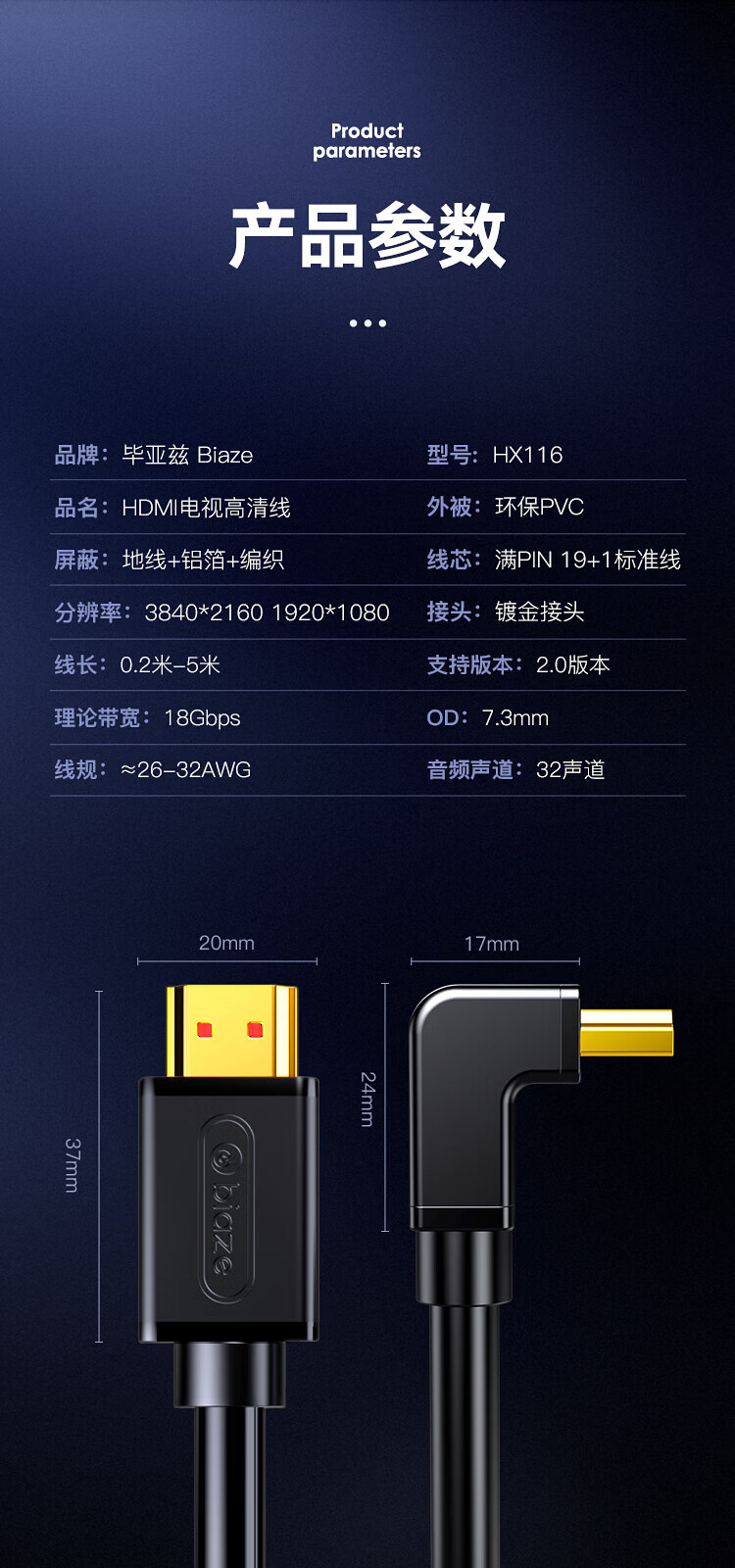 毕亚兹/BIAZE HX116-1M 网络连接设备 HDMI线2.0版4K3D数字高清线1米